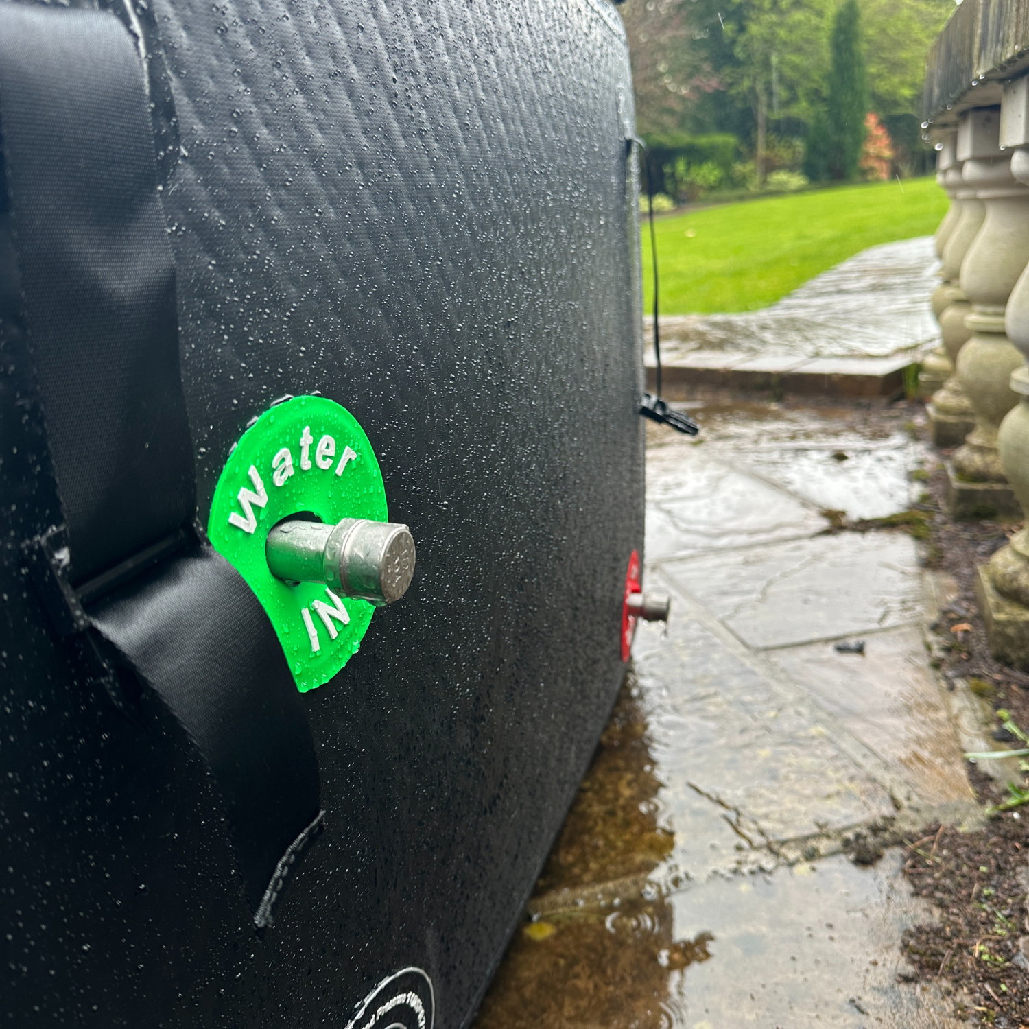 An der Seite der Kapsel befindet sich ein praktischer Außenhahn und am Boden befindet sich ein „Stöpsel“ zum Ablassen des Wassers.